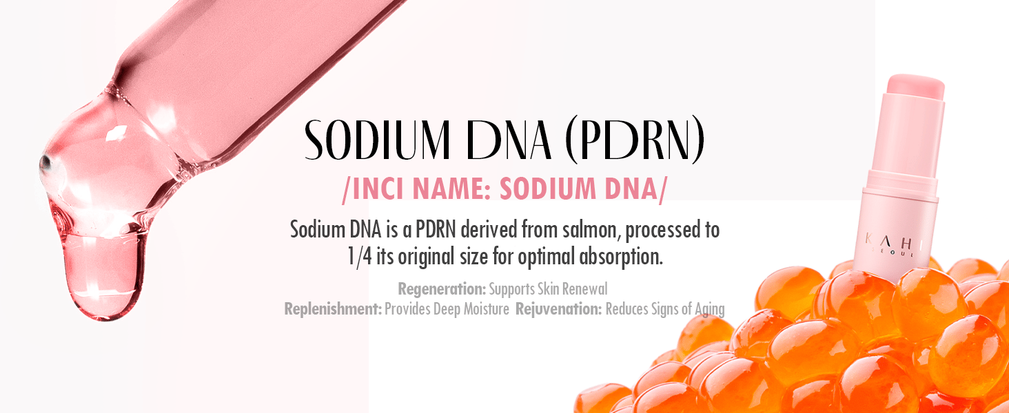 PDRN: Repairing power derived from deep-sea salmon DNA accelerates cellular regeneration and diminishes wrinkles.